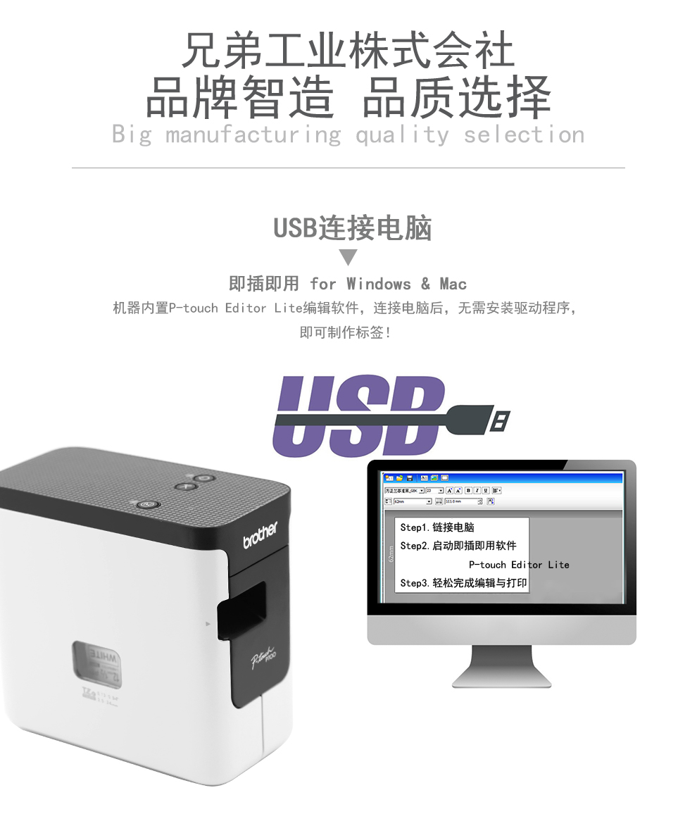 兄弟(brother)标签机PT-P700固定资产标签打印机 自营