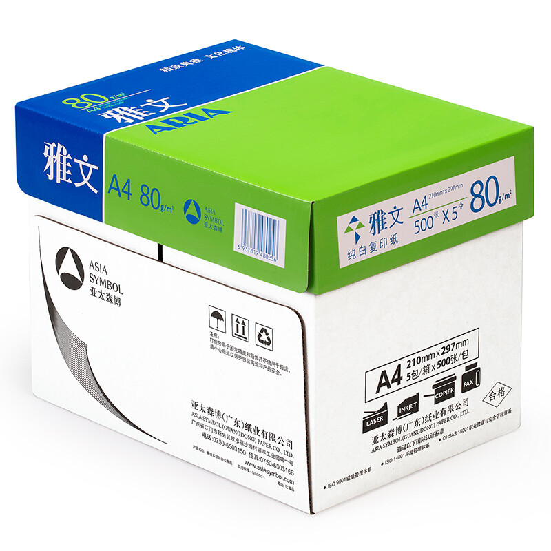 亚太森博(Asia Symbol)雅文80g A4复印打印纸500张/包 (2500张/箱) 自营