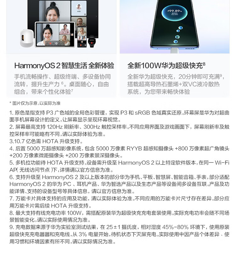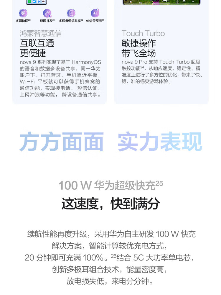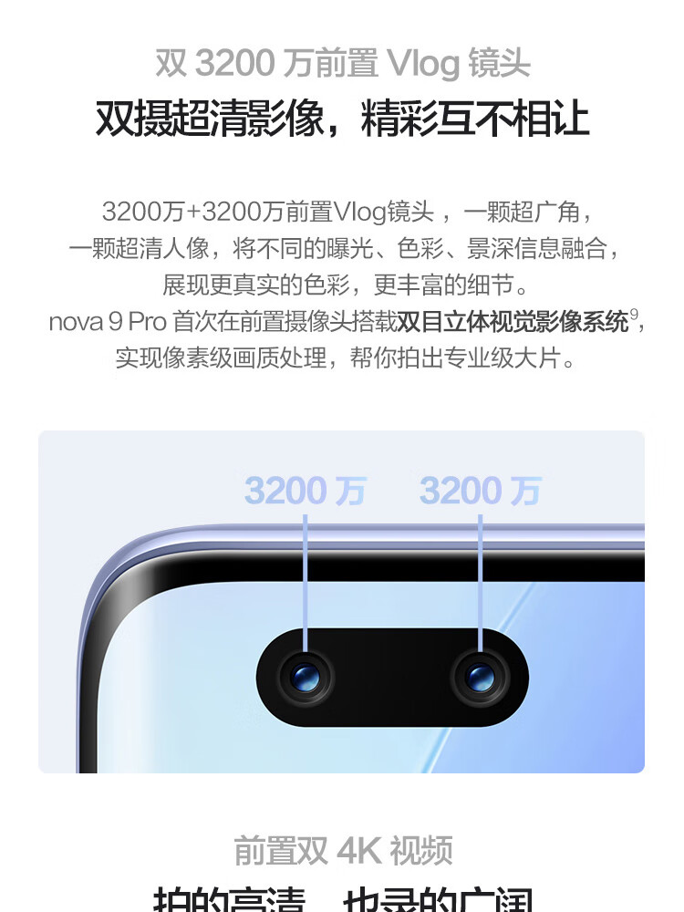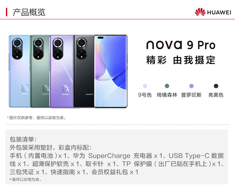 HUAWEI nova 9 Pro 4G全网通 双3200万前置Vlog镜头 100W超级快充 10亿色臻彩屏 8+128GB 亮黑色华为手机 自营