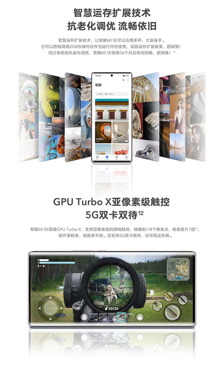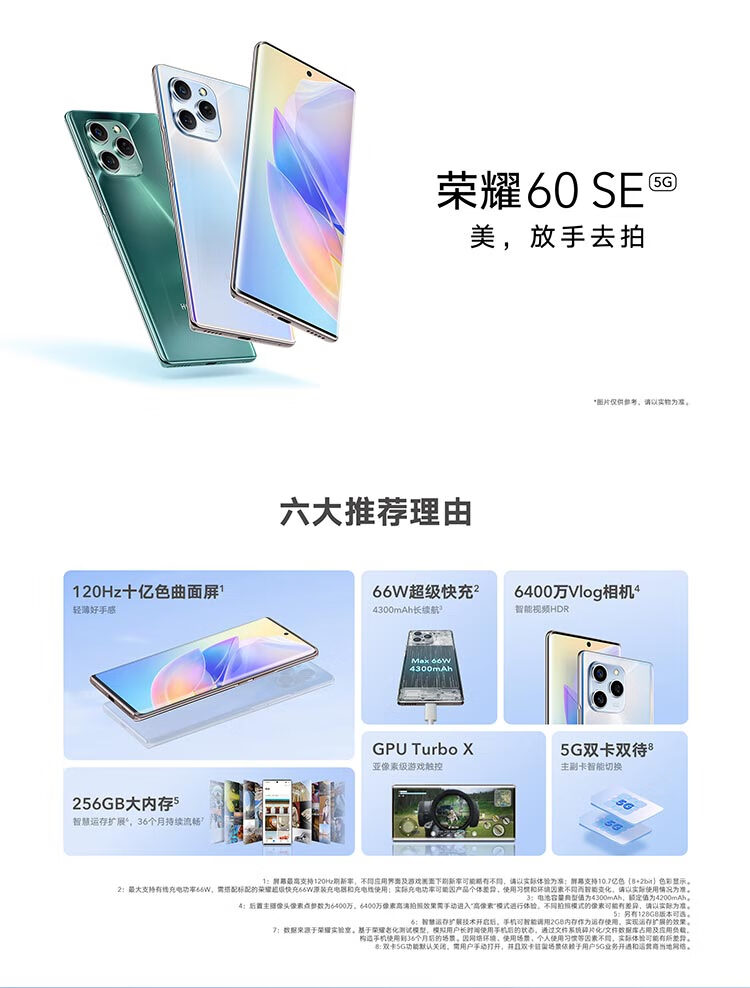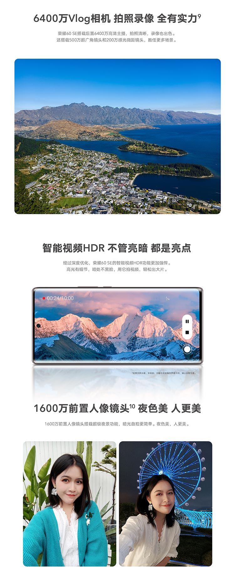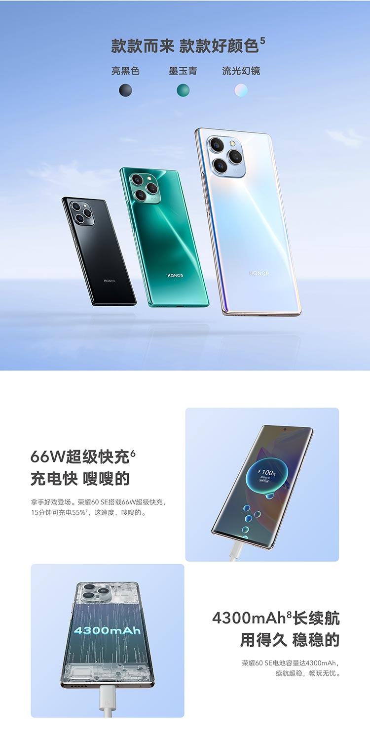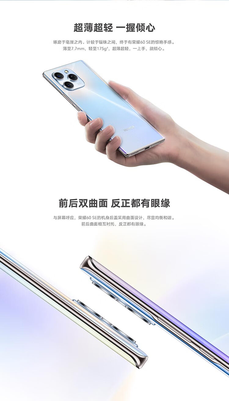 荣耀60 SE 120Hz十亿色曲面屏 66W超级快充 6400万Vlog相机 全网通版 8GB+128GB 流光幻镜 自营