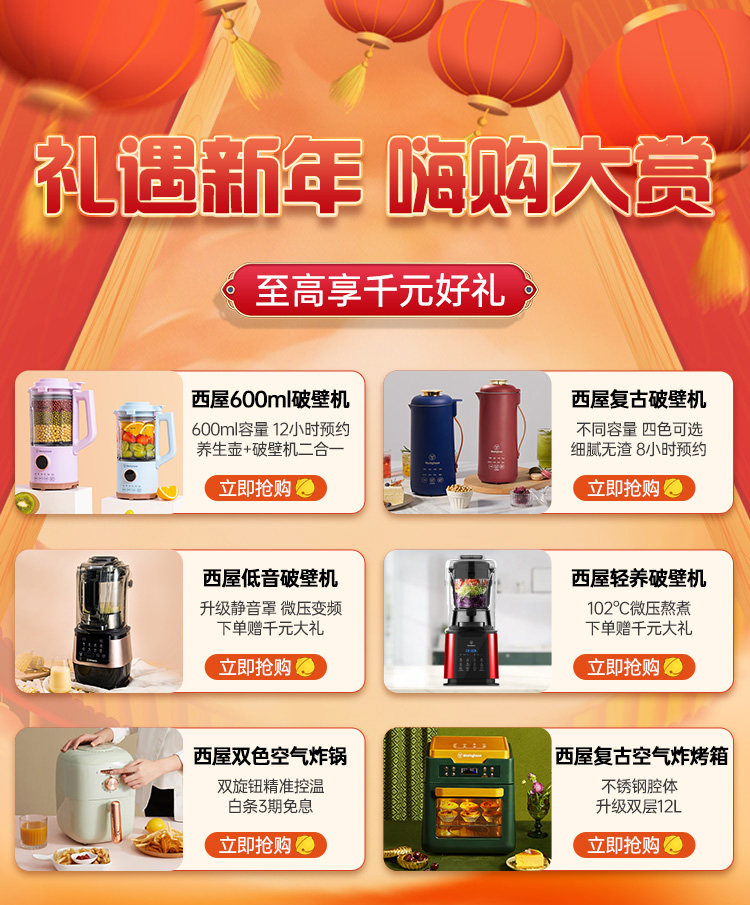 西屋(Westinghouse)破壁机家用多功能 降噪预约加热豆浆机料理机早餐机绞肉馅机榨汁机辅食机 HS0455 高速破壁 智能触控