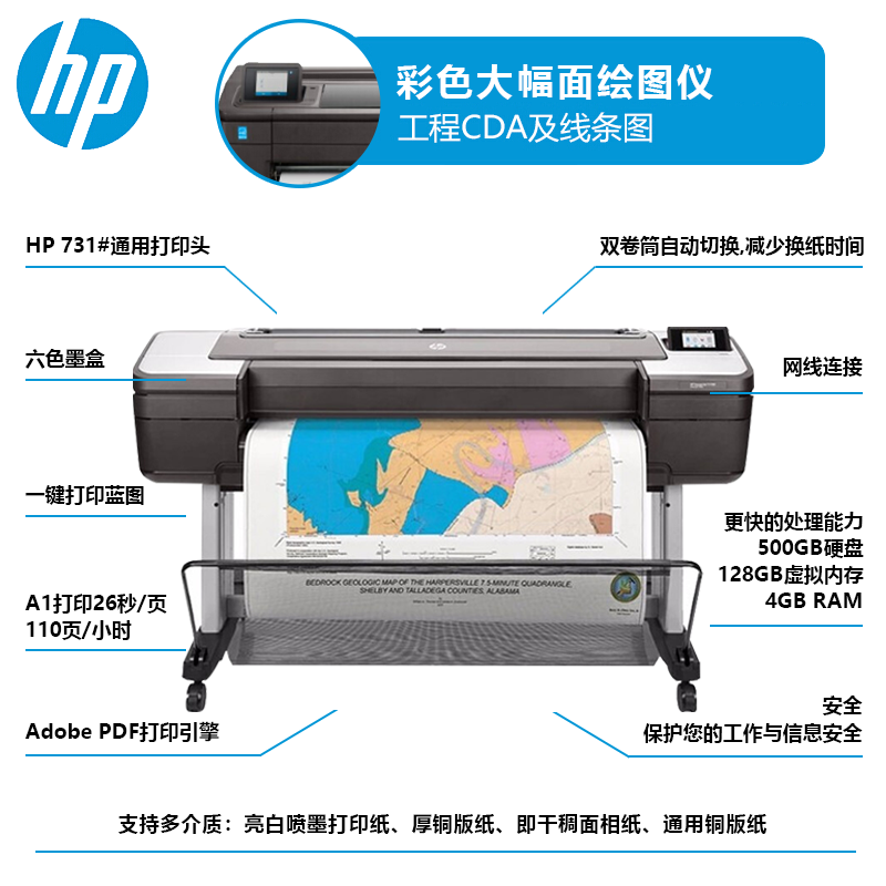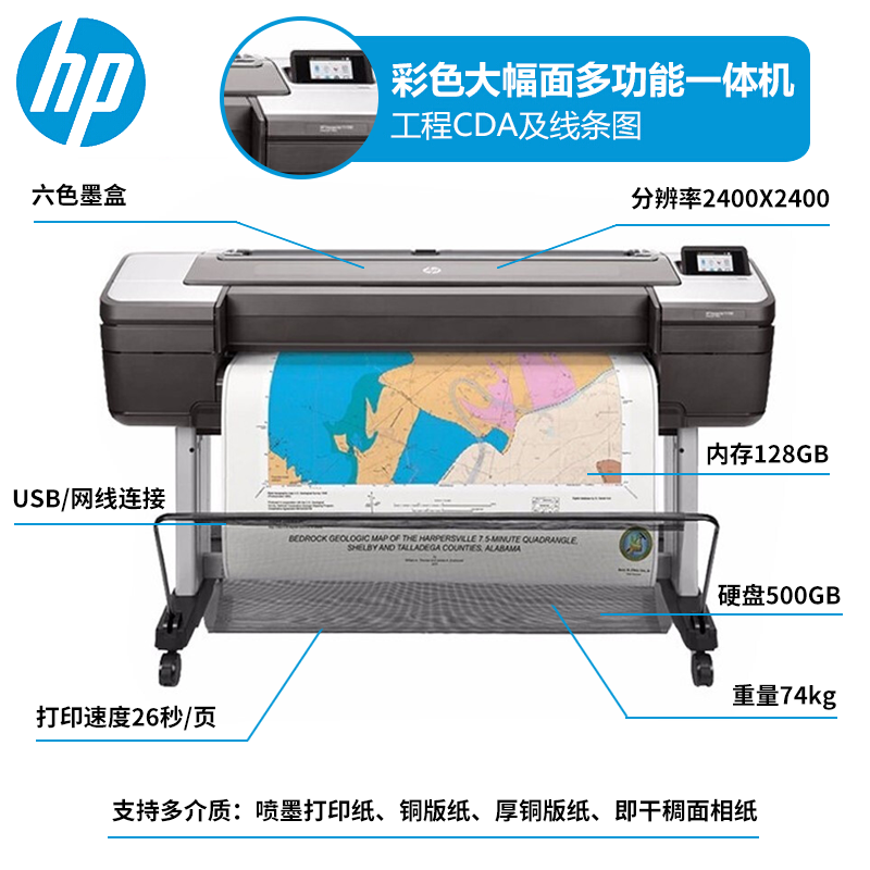 惠普(HP)绘图仪T1708ps B0+44英寸-6色单纸轴 自营