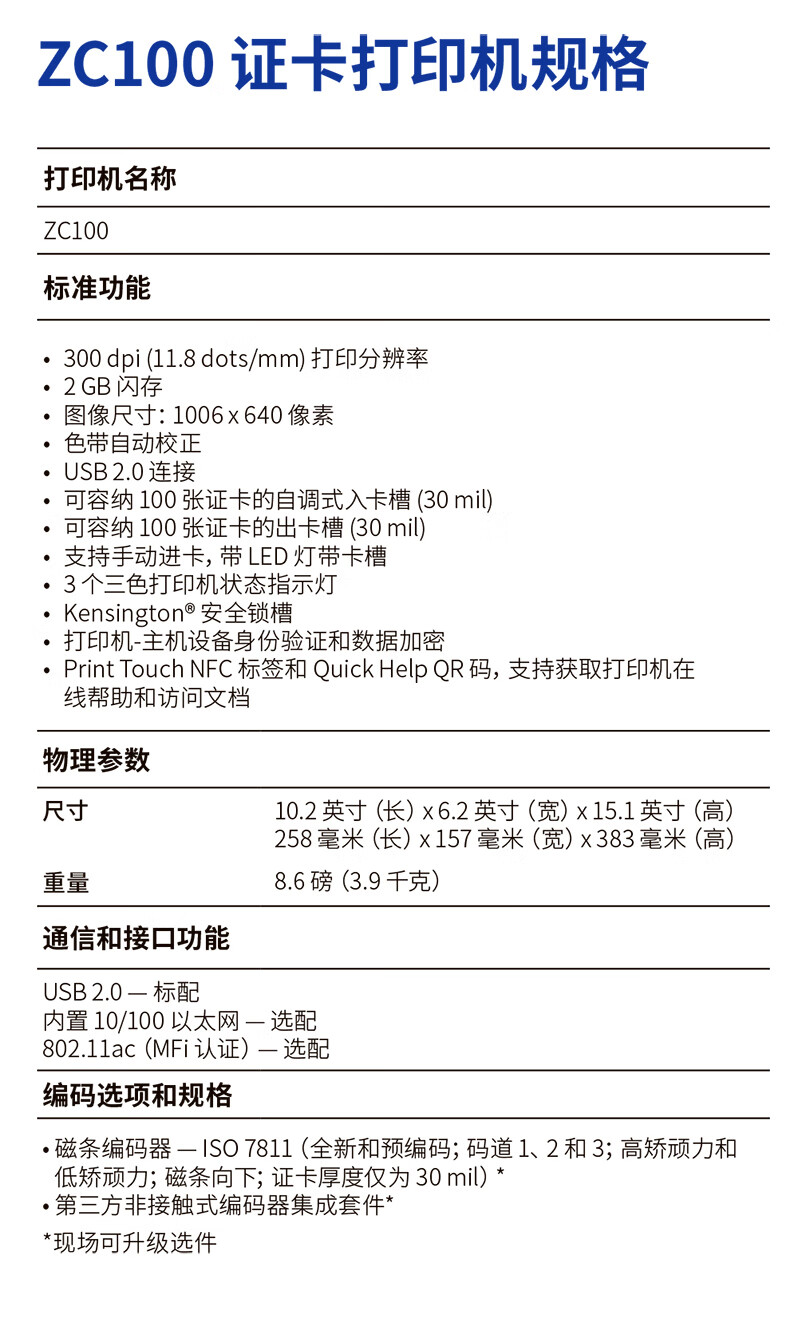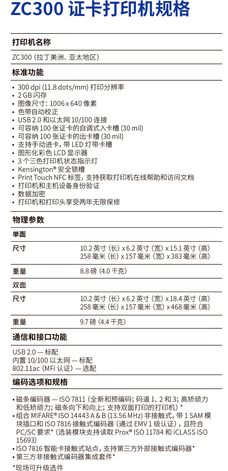 斑马(ZEBRA)PVC证卡打印机ZC300【单面-标配】 自营