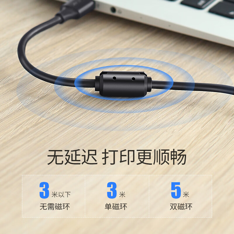 绿联(UGREEN)USB2.0高速打印机线(5米/AM/BM方口接头) 自营