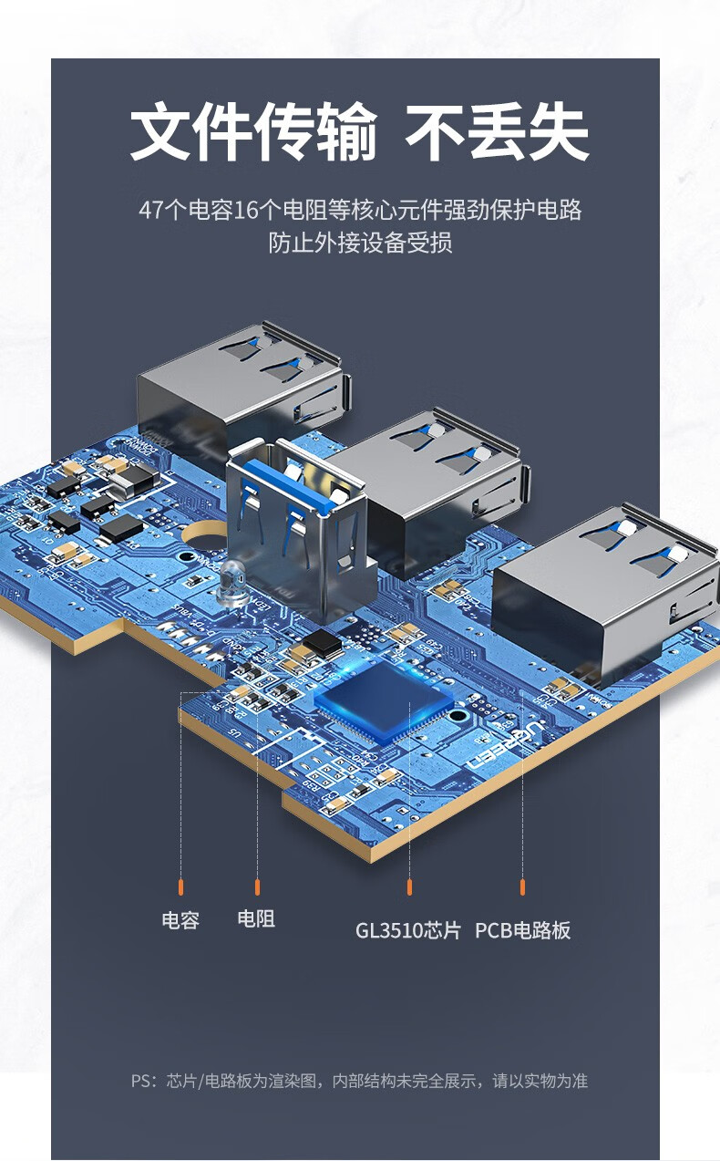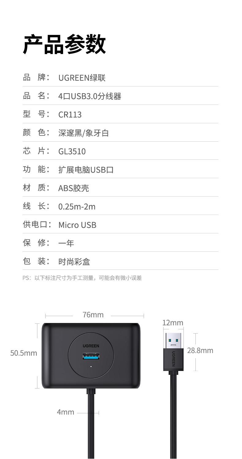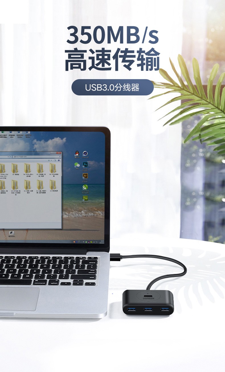 绿联(UGREEN)USB3.0一拖四分线器30201