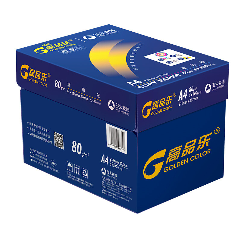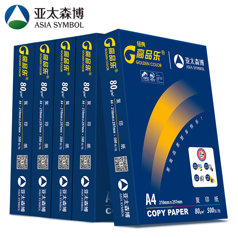 亚太森博(Asia Symbol)高品乐80g A4复印纸 打印纸 PEFC 认证 500张/包 5包/箱(2500张) 自营