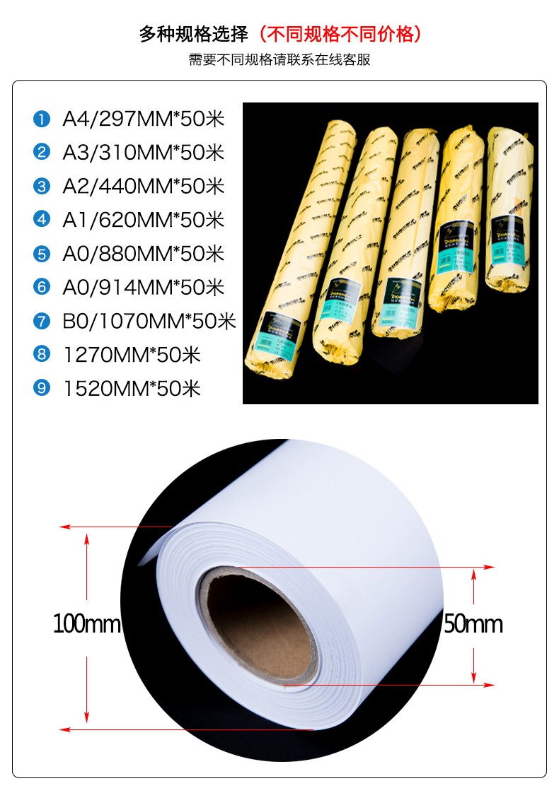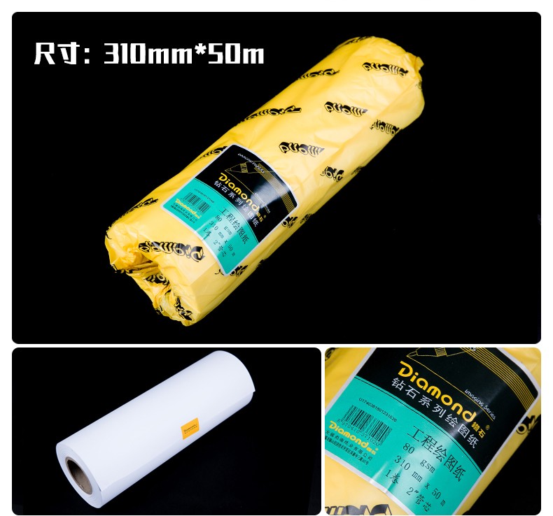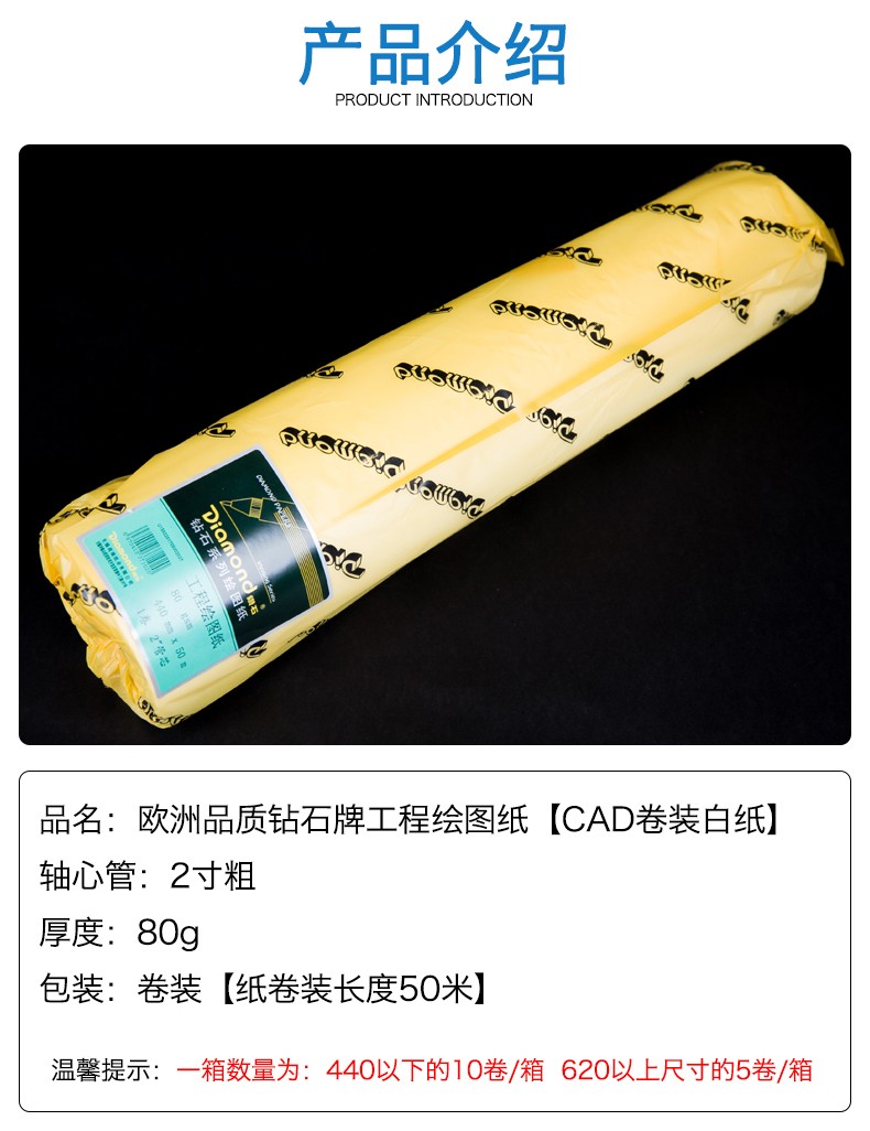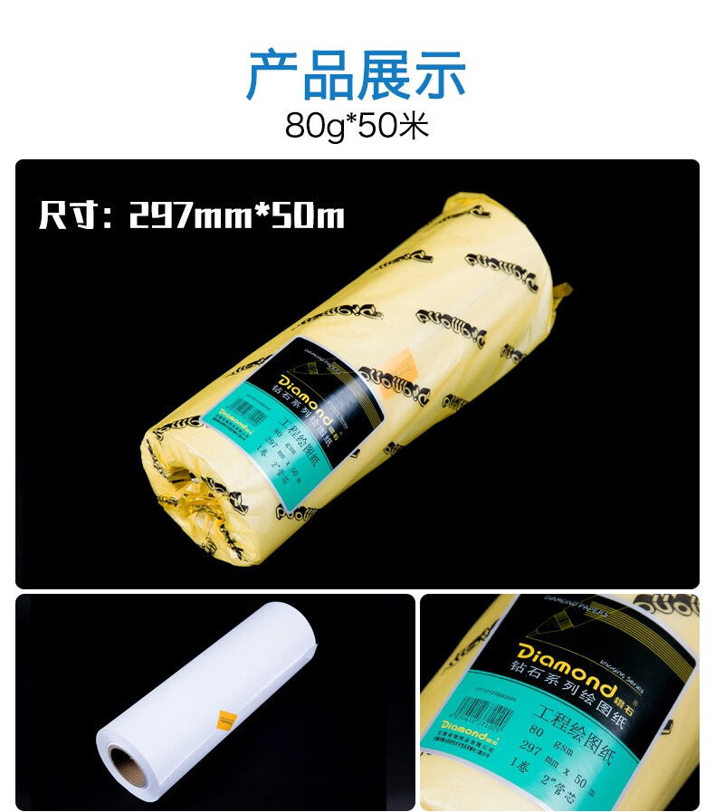 钻石工程绘图纸B0(80克/1070mm*50米 5卷/箱)2寸管芯 自营