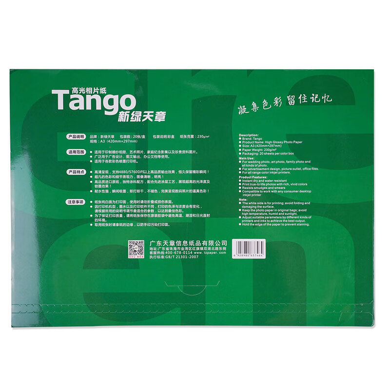 天章(TANGO)新绿天章A4高光相片纸(230克 20张/包) 自营