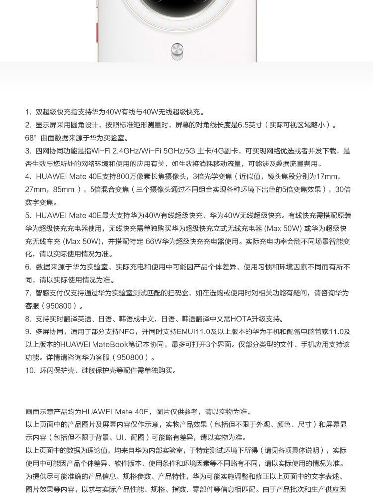 华为 HUAWEI Mate 40E 麒麟990E 5G SoC芯片 超感知徕卡影像 68°曲面屏 8GB+128GB亮黑色5G全网通 自营