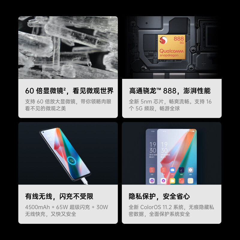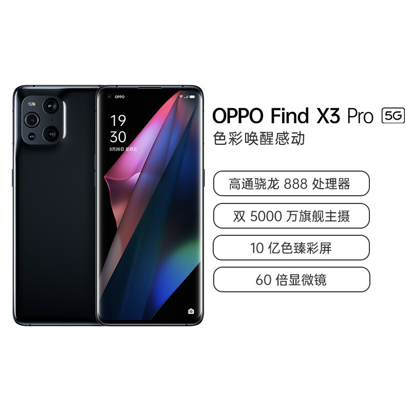 OPPO Find X3 Pro 骁龙888 5000万双主摄IMX766 10亿色臻彩屏 60倍显微镜 12+256GB 镜黑 5G拍照旗舰手机 自营