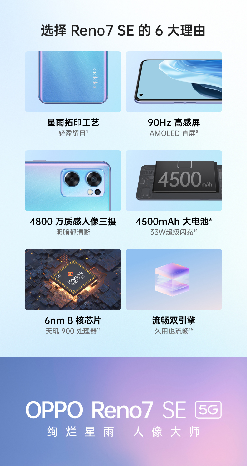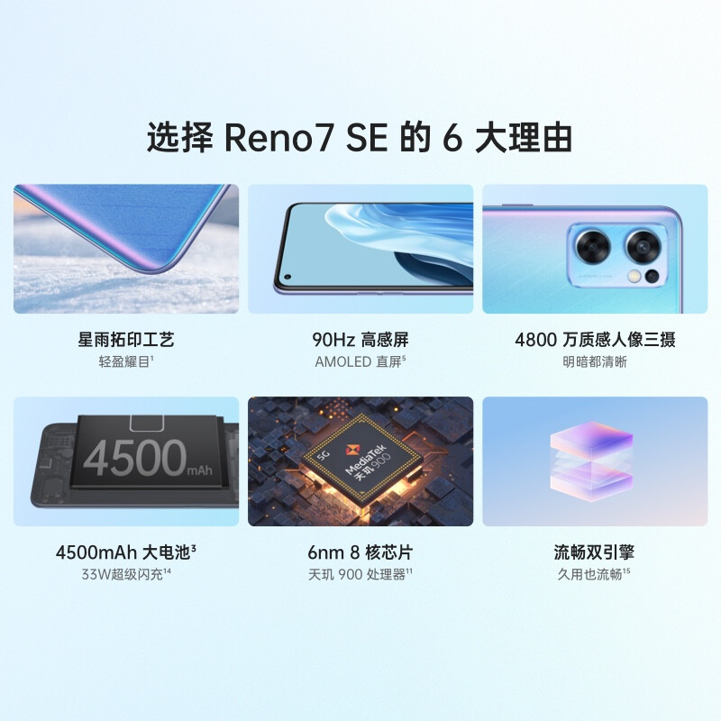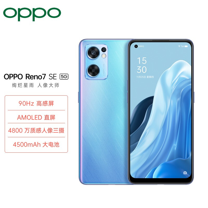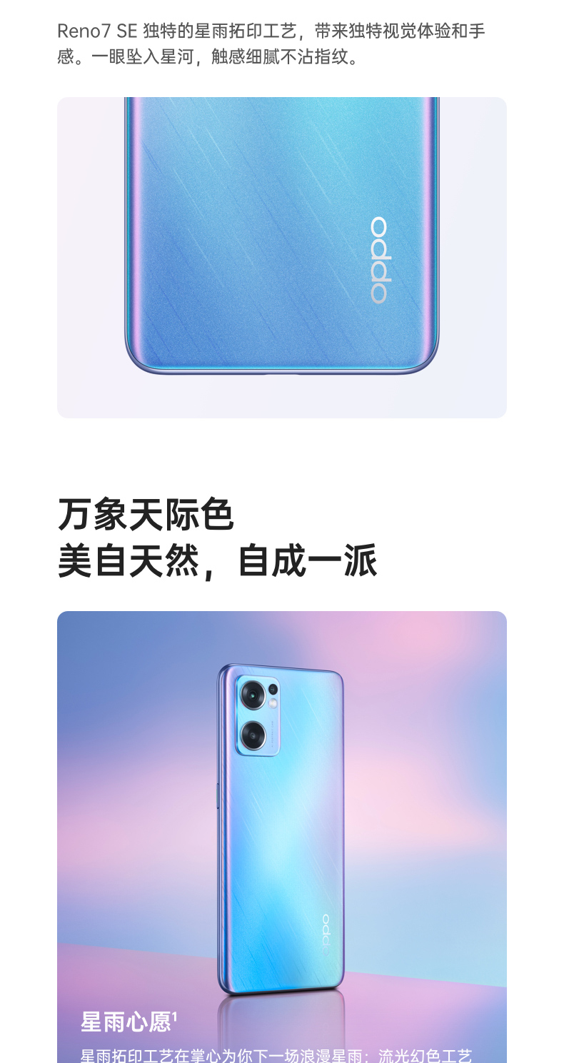OPPO Reno7 SE 8+128GB 星雨心愿 90Hz高感屏 AMOLED直屏 4800万质感人像三摄 4500mAh大电池 5G手机 自营
