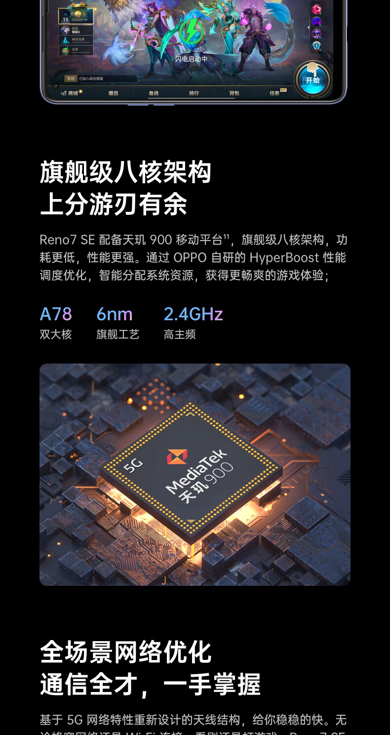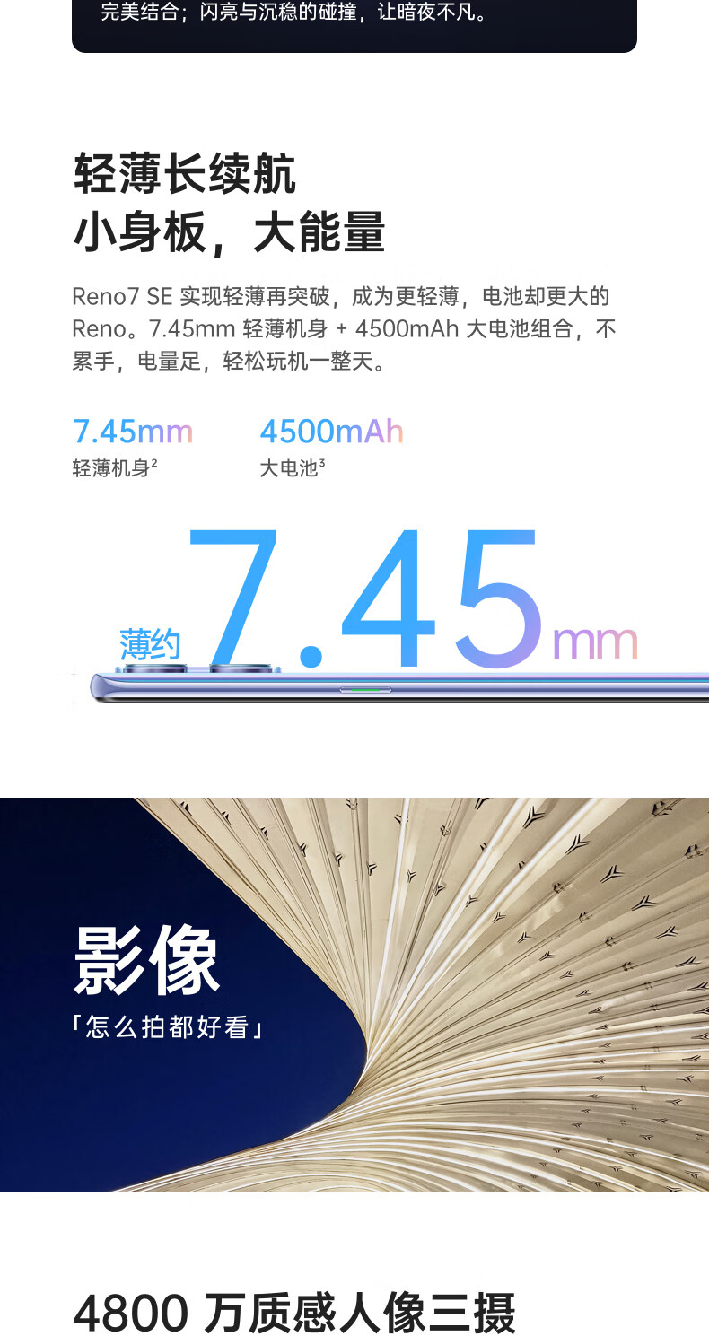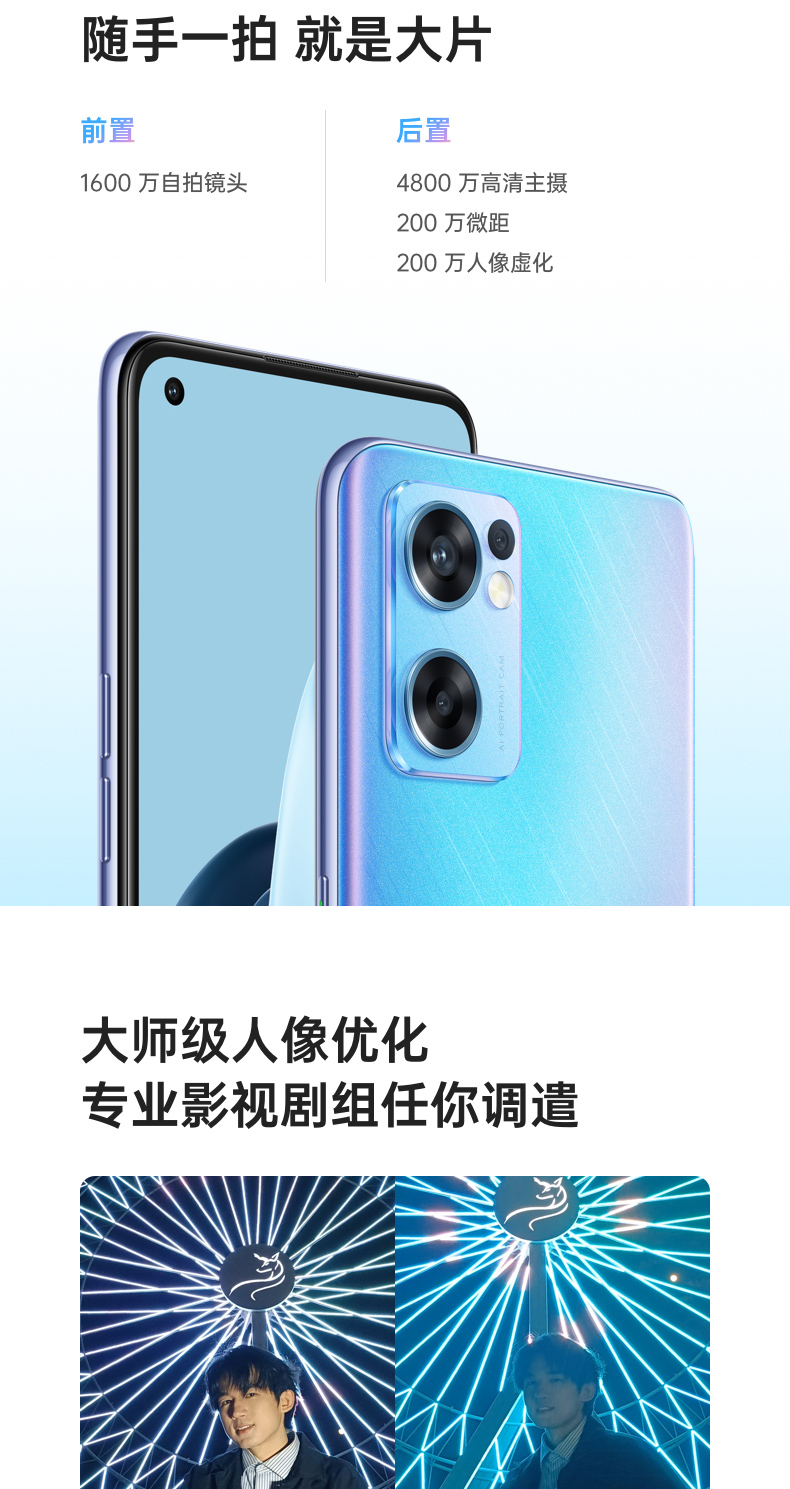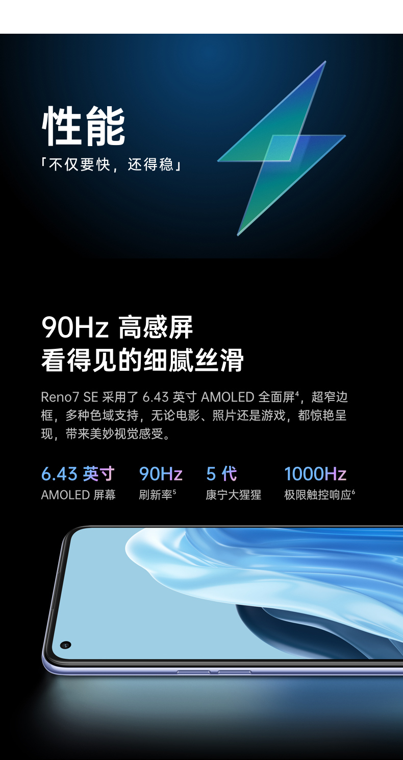 OPPO Reno7 SE 8+128GB 星雨心愿 90Hz高感屏 AMOLED直屏 4800万质感人像三摄 4500mAh大电池 5G手机 自营