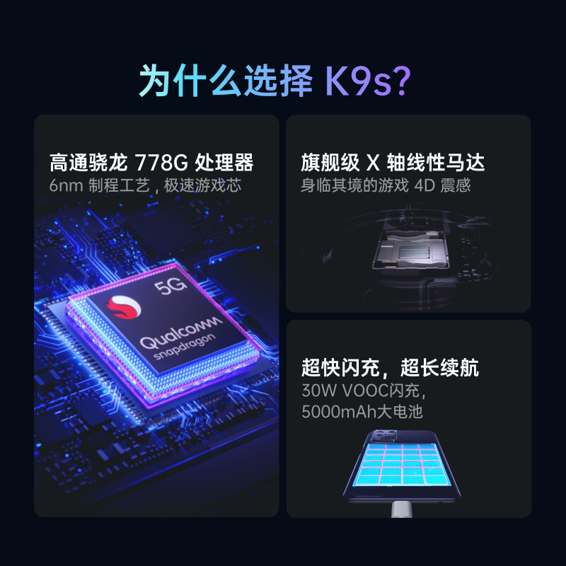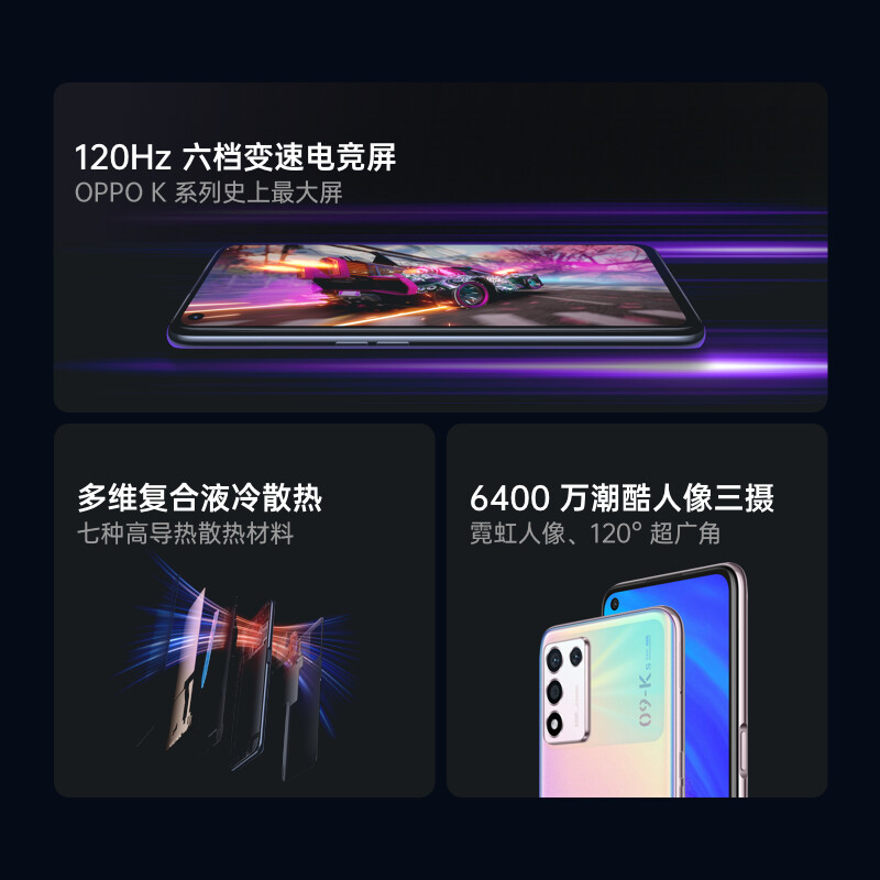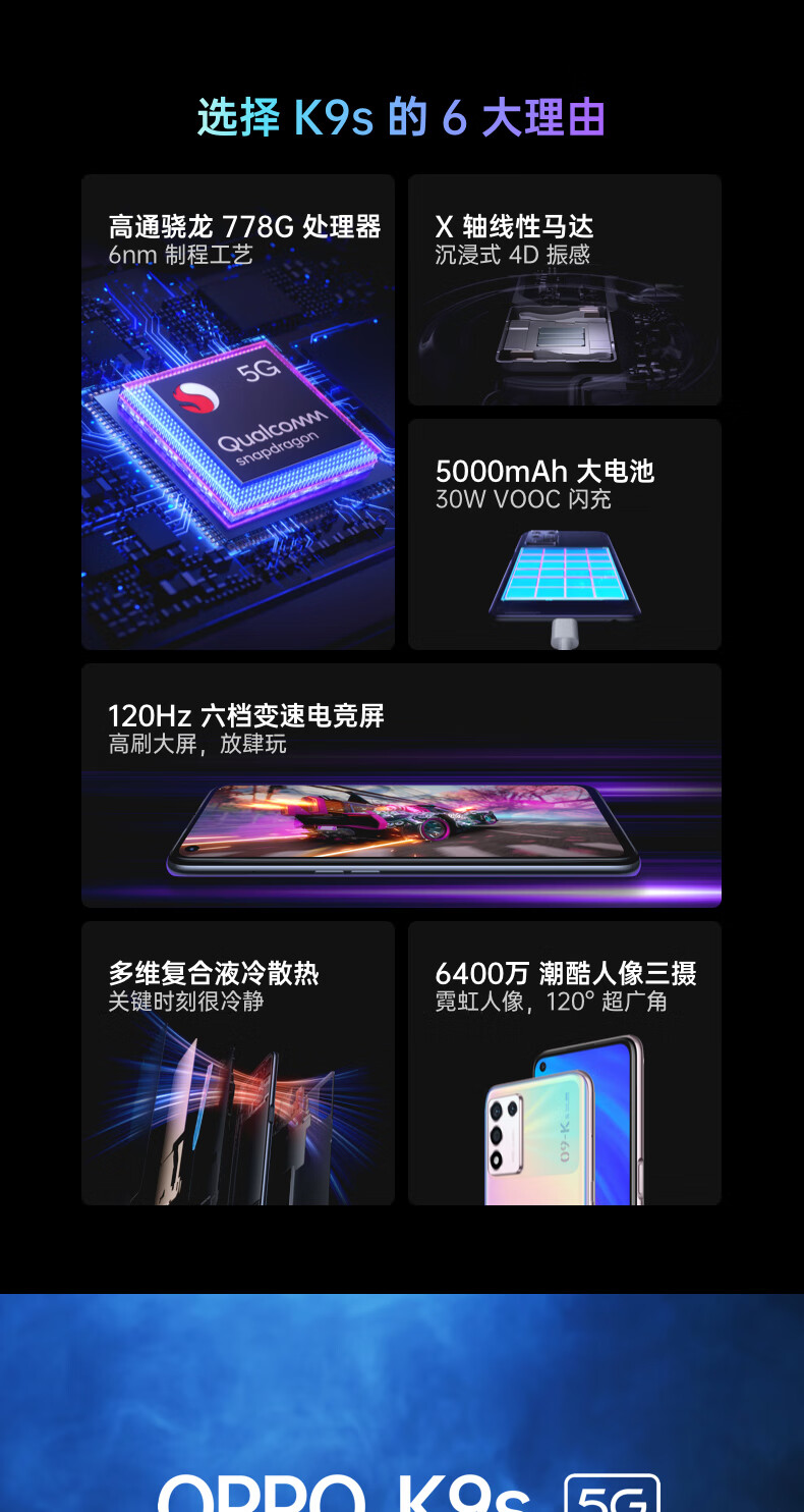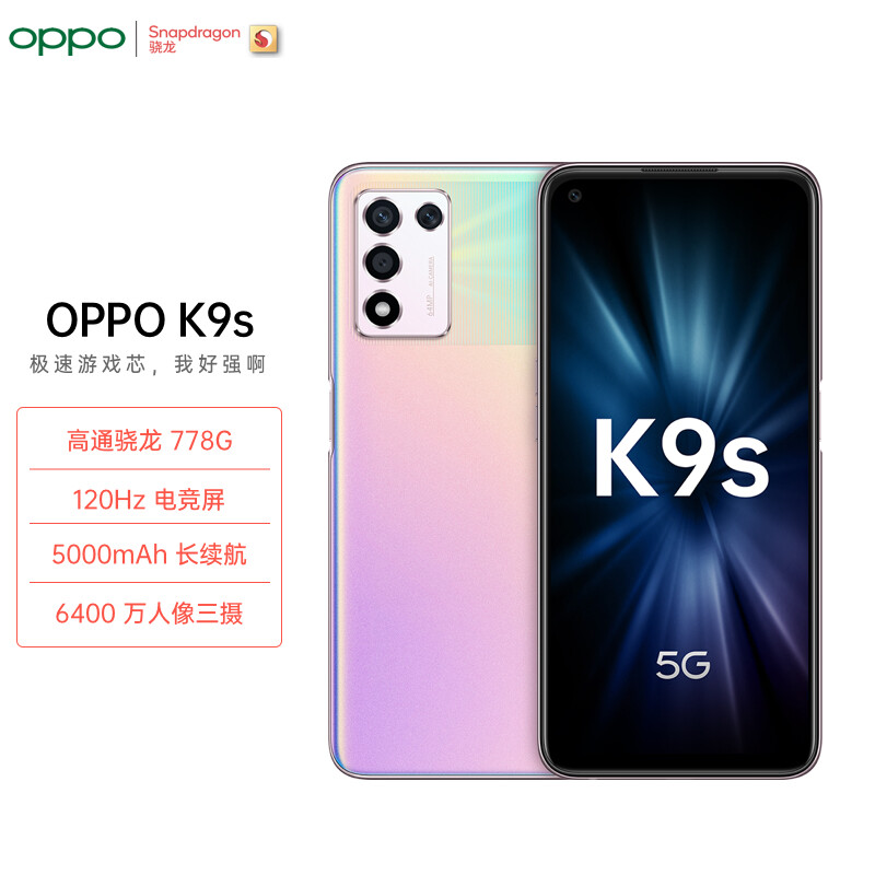OPPO K9s 6+128GB 幻紫流沙 骁龙778G 120Hz电竞屏 5000mAh长续航 6400万人像三摄 拍照 5G手机 自营