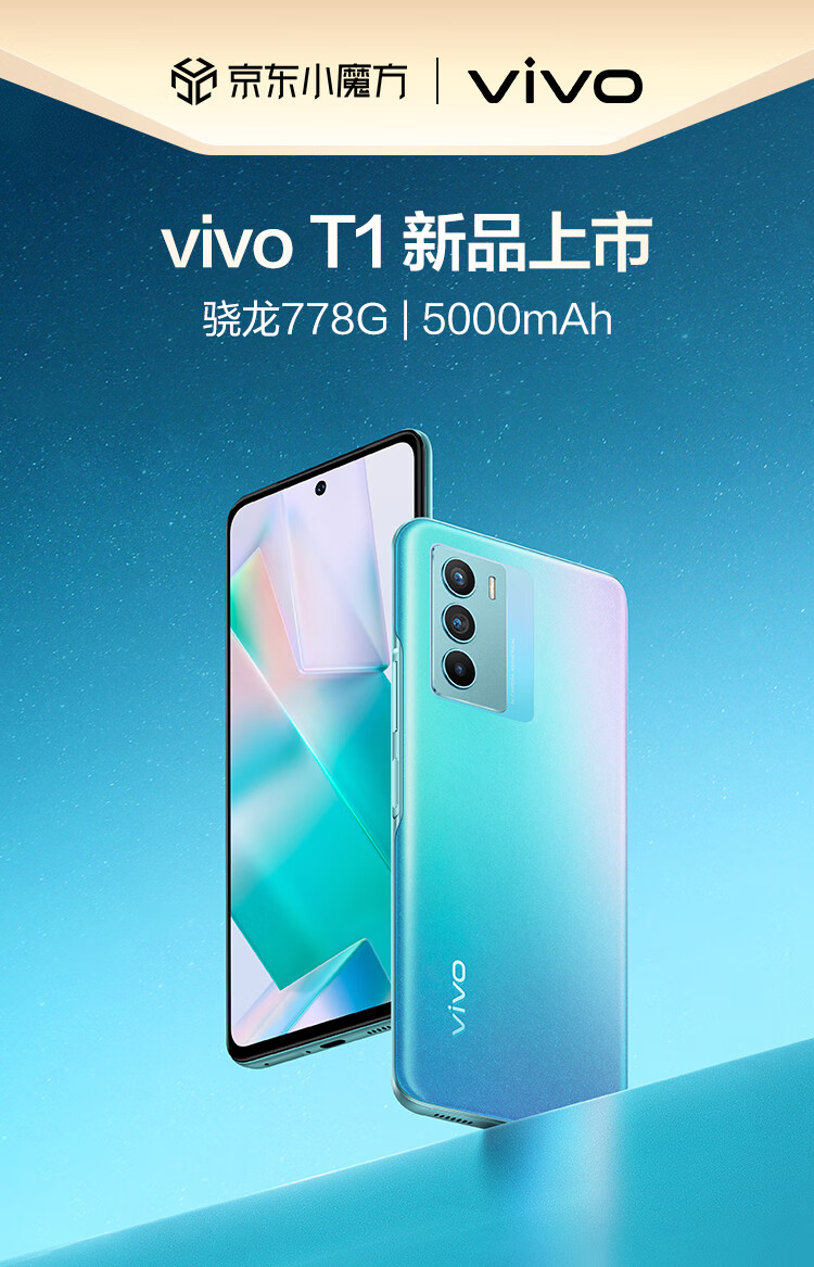 vivo T1 5G手机 8GB+128GB 电光青 高通骁龙778G 5000mAh大电池 6400万超清影像 游戏手机 拍照手机 自营