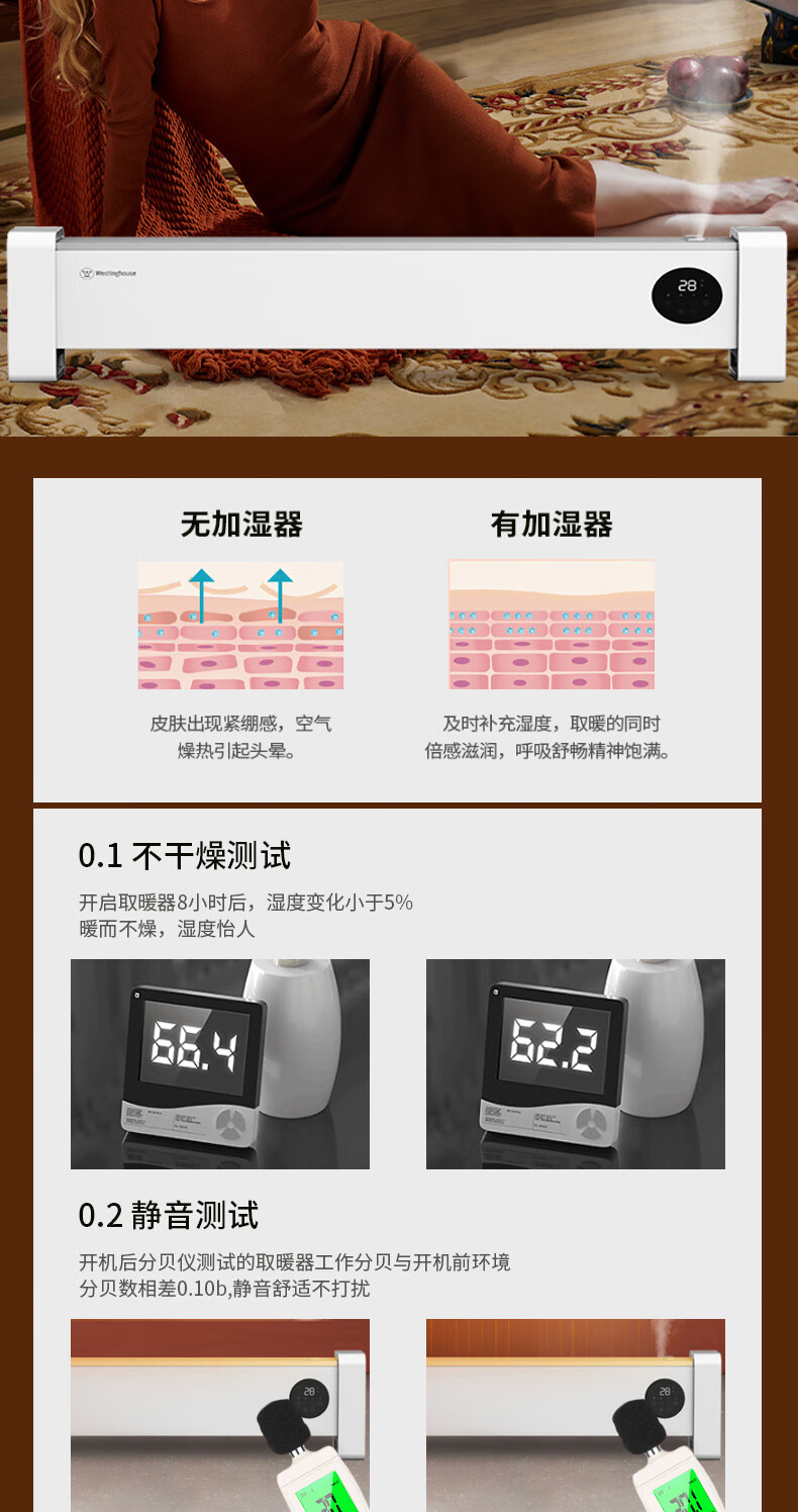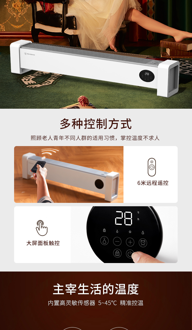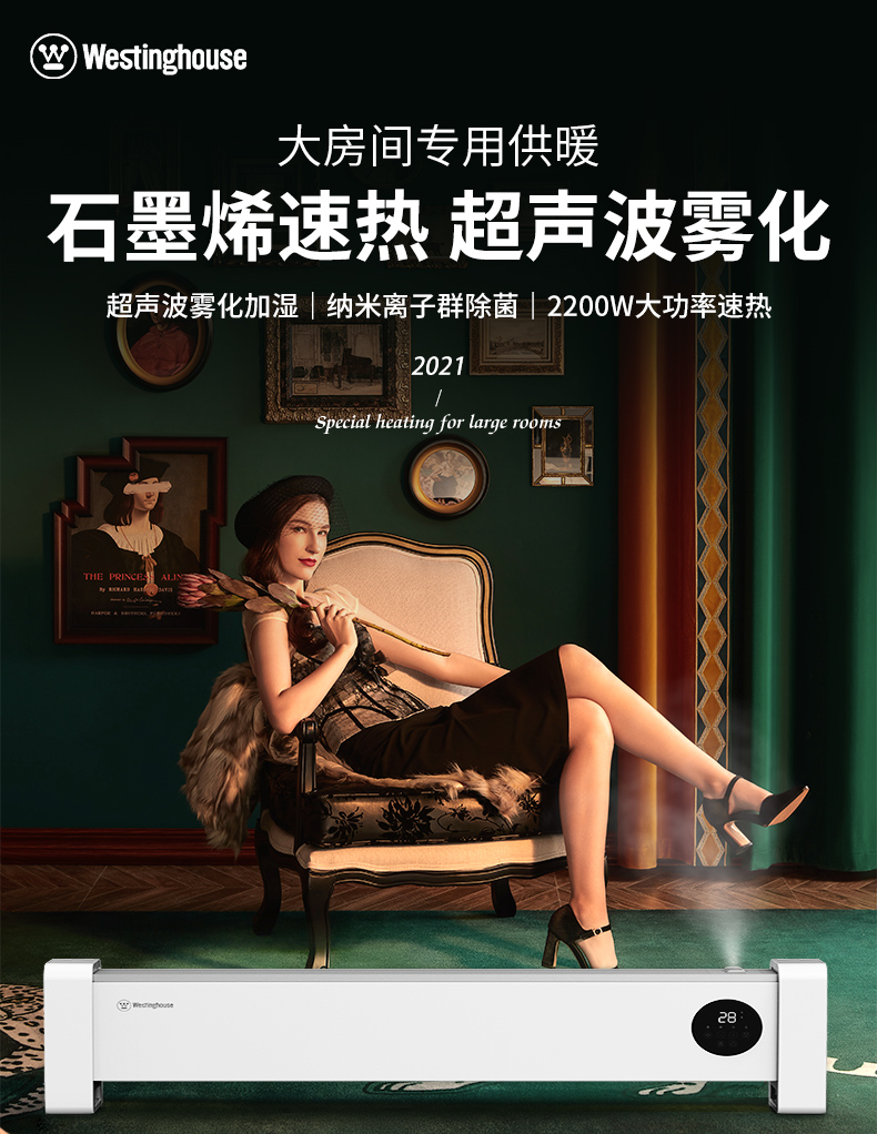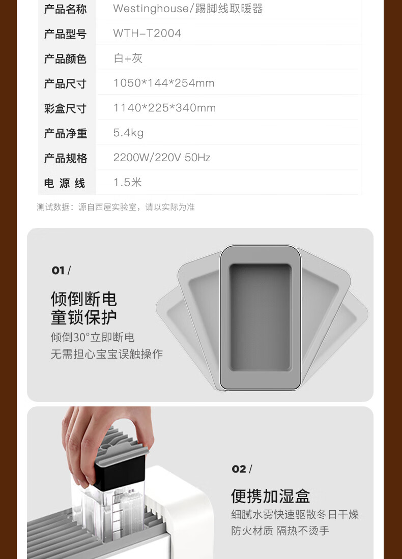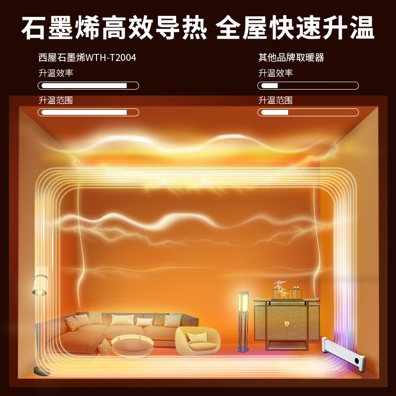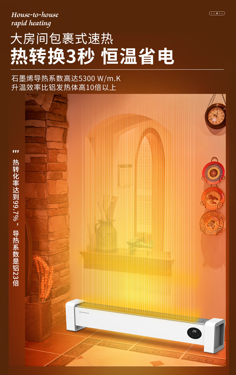 西屋踢脚线取暖器家用速热加湿石墨烯电暖器浴室对流暖气片防水孕婴可用烘衣电暖气遥控移动地暖 T2004【石墨烯发热+加湿净化】 自营