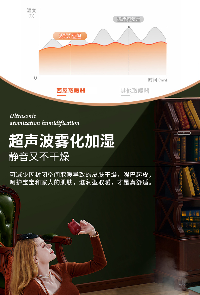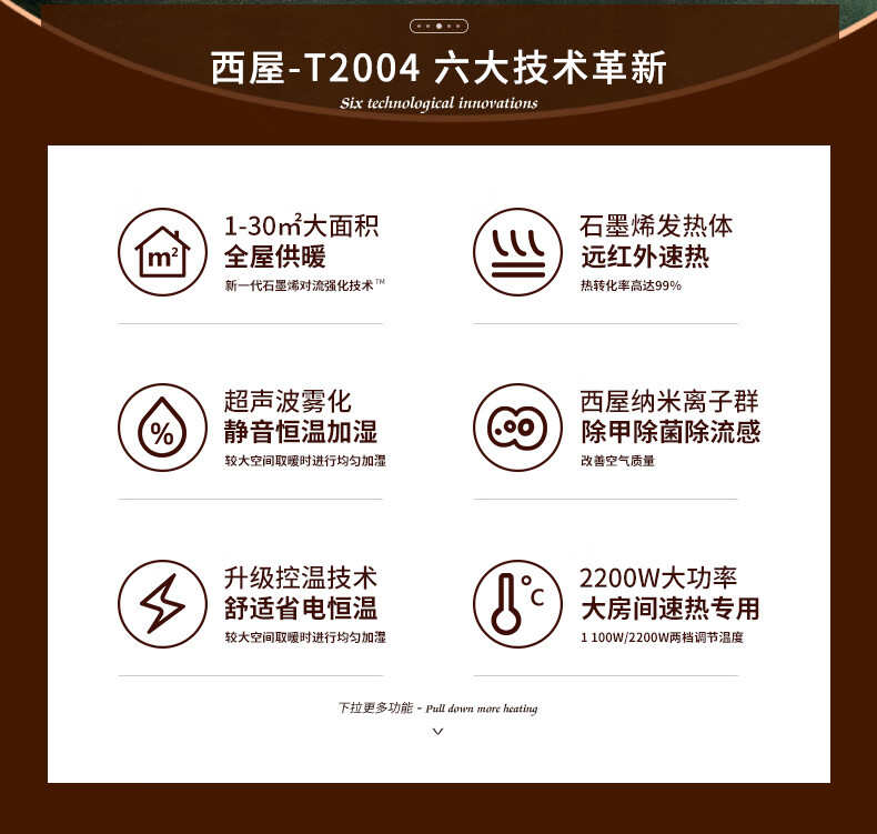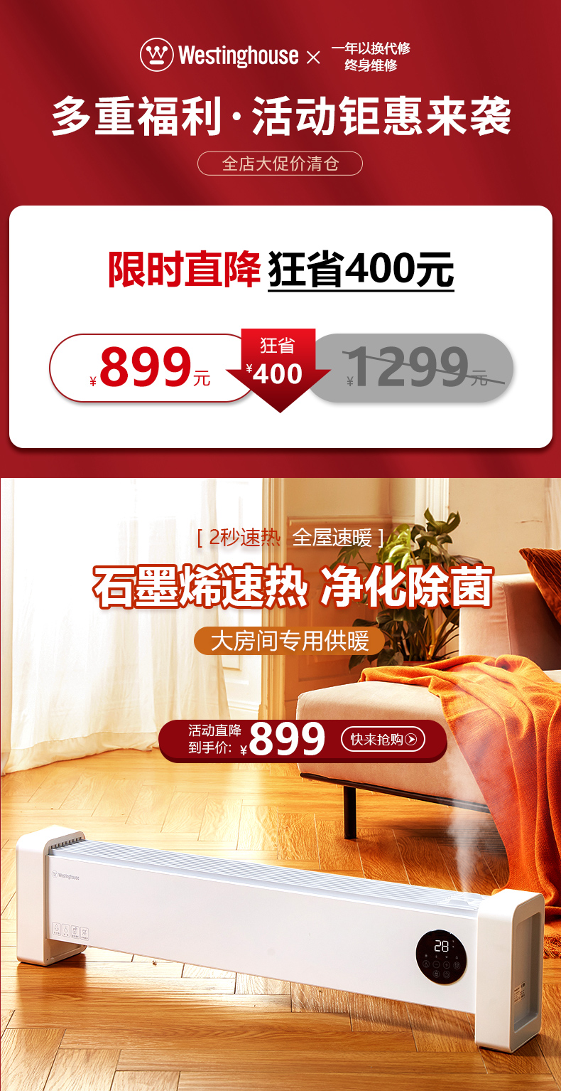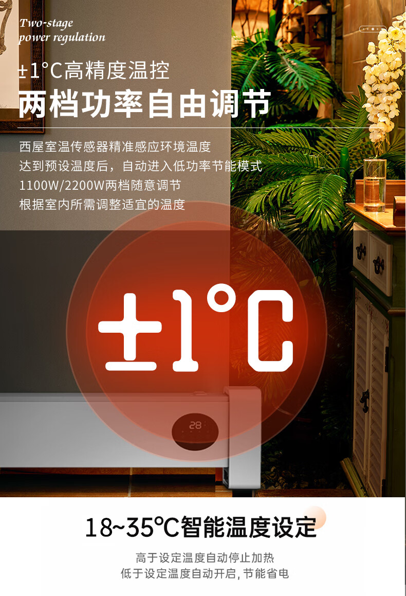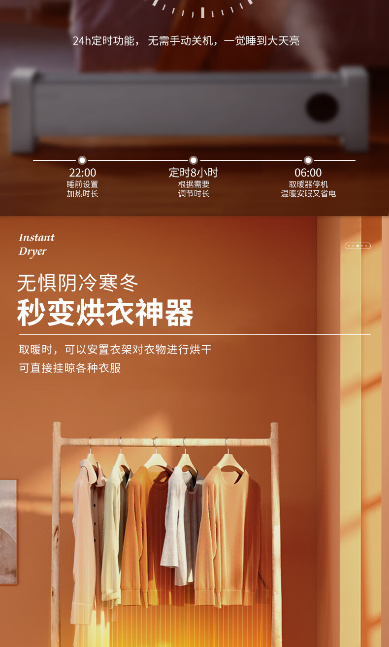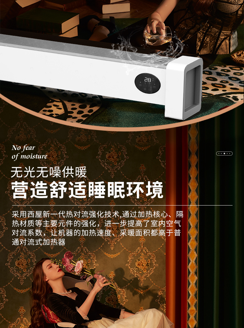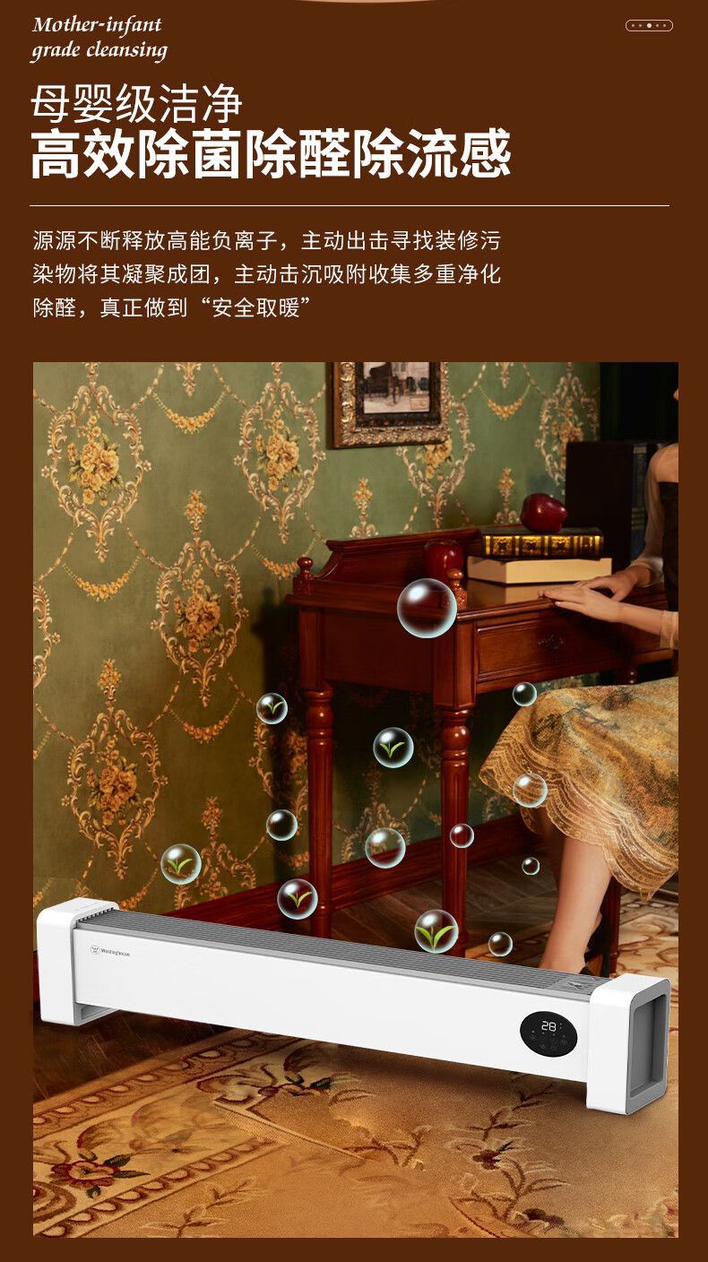 西屋踢脚线取暖器家用速热加湿石墨烯电暖器浴室对流暖气片防水孕婴可用烘衣电暖气遥控移动地暖 T2004【石墨烯发热+加湿净化】 自营