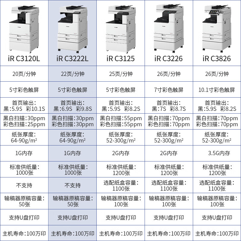 大型打印机办公商用彩色激光A3A4复印机iR佳能C3222L高速扫描3226一体机3125商务复合机 佳能C3222L(C3120L升级款)