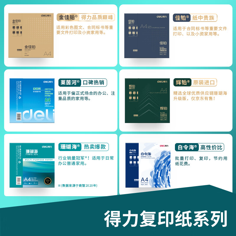 得力(deli)珊瑚海 A4 70g 双面打印纸 行业热销复印纸 500张/包 5包1箱(整箱2500张) 自营