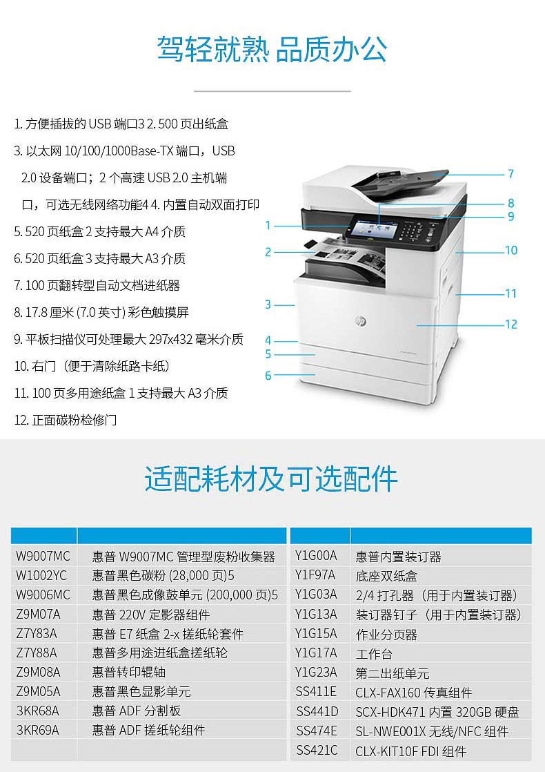 惠普(HP)M72625dn a3a4黑白激光数码复合机 打印复印扫描多功能一体机 大型办公企业级 72625dn(自动双面+有线网络+25页/分钟)